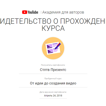 СЕРТИФИКАТЫ С КАНАЛА ЮТУБ